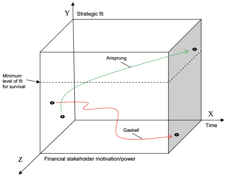 In the example above, Gaskell hadn’t met the minimum level of fit for survival as a company and floundered over time, while the Airsprung business turnaround became a success.